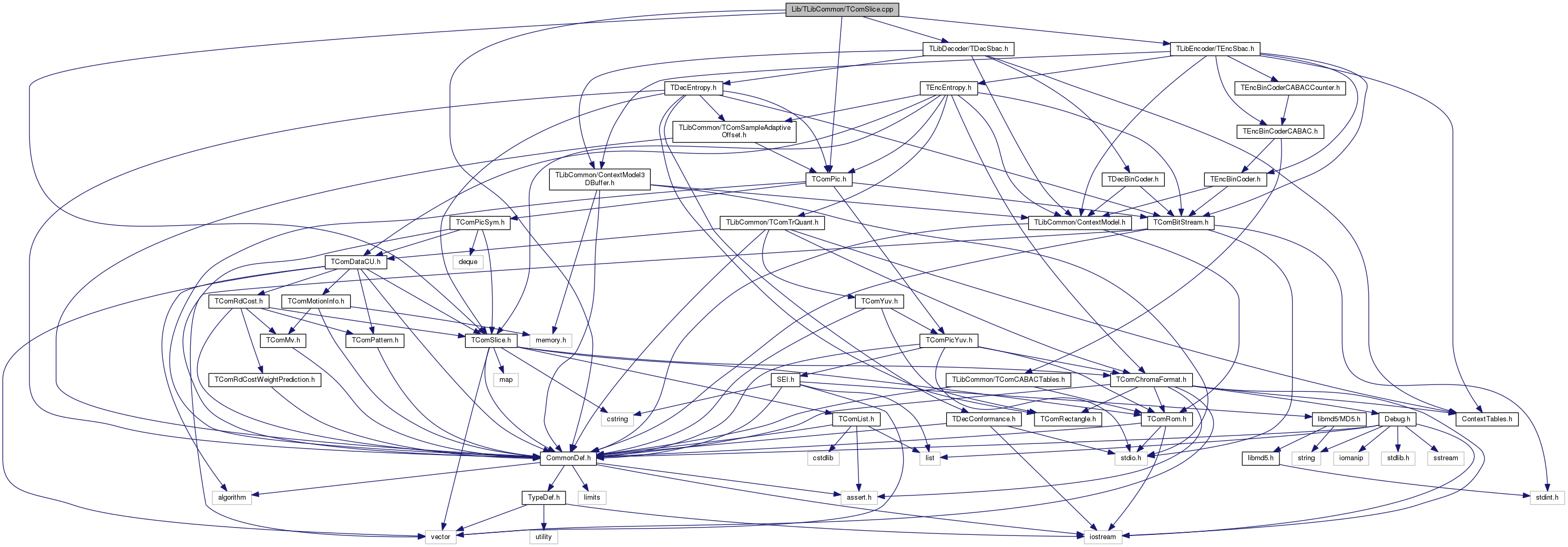 #include "CommonDef.h"#include "TComSlice.h"#include "TComPic.h"#include "TLibEncoder/TEncSbac.h"#include "TLibDecoder/TDecSbac.h"