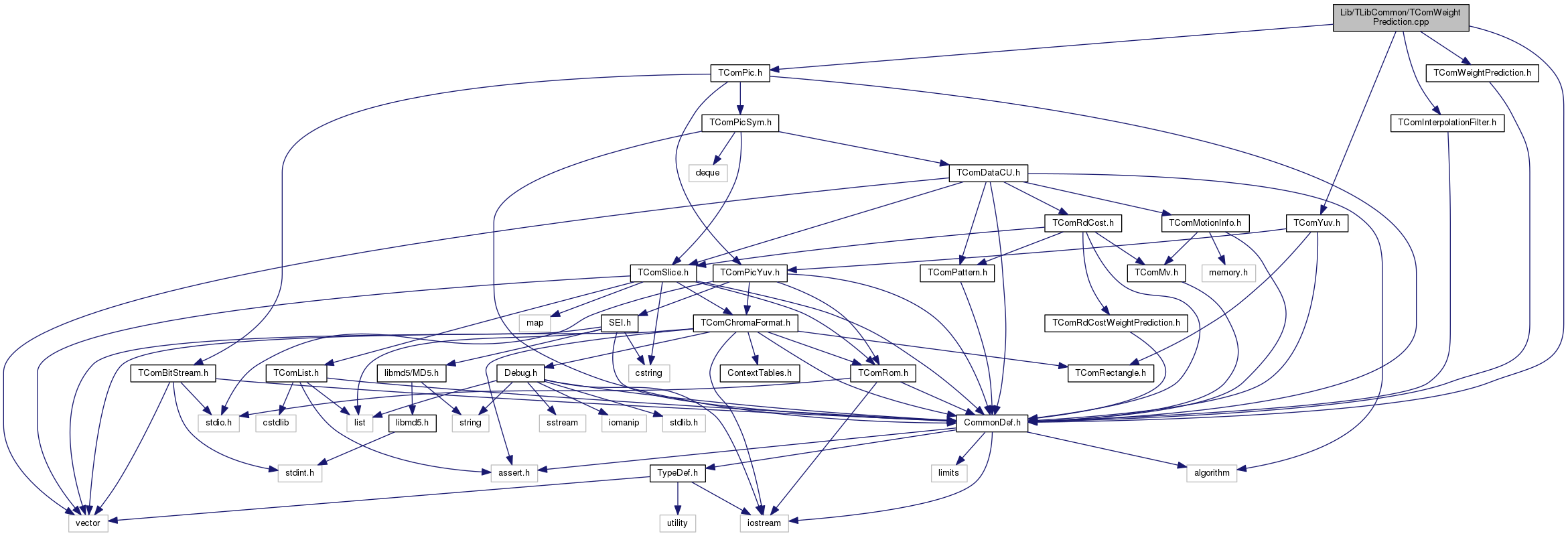 #include "CommonDef.h"#include "TComYuv.h"#include "TComPic.h"#include "TComInterpolationFilter.h"#include "TComWeightPrediction.h"