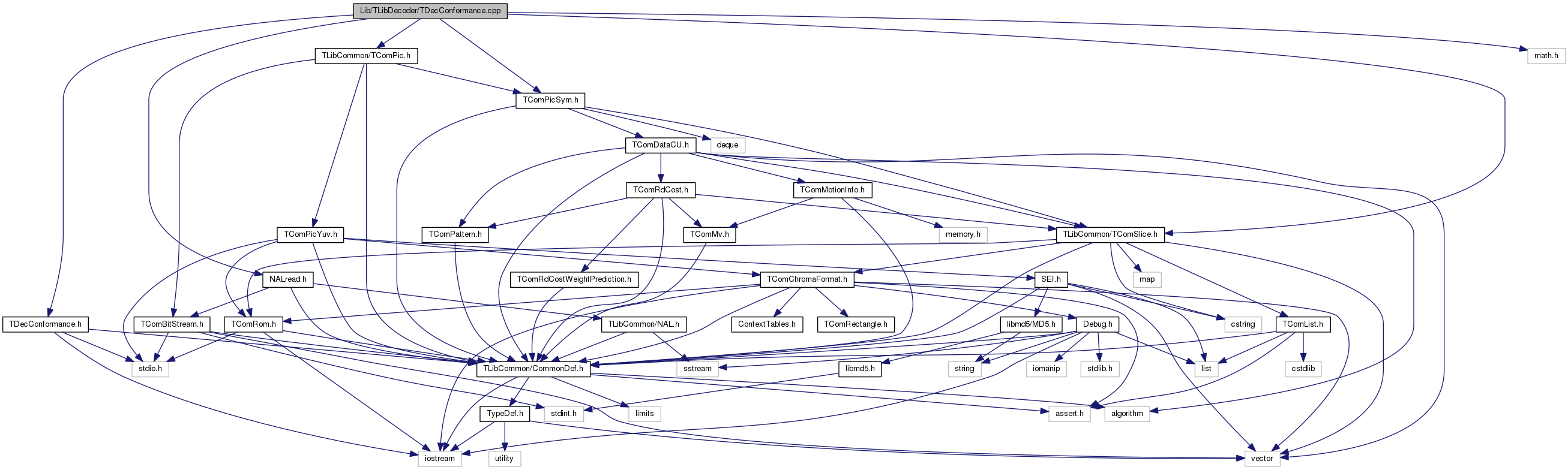 #include "TDecConformance.h"#include "TLibCommon/TComSlice.h"#include "TLibCommon/TComPic.h"#include "TLibCommon/TComPicSym.h"#include "NALread.h"#include <math.h>
