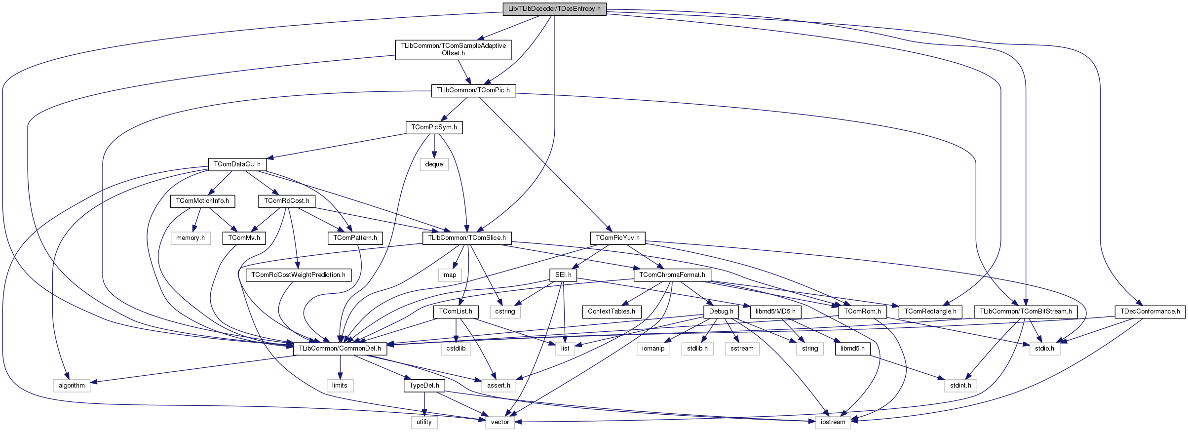 #include "TLibCommon/CommonDef.h"#include "TLibCommon/TComBitStream.h"#include "TLibCommon/TComSlice.h"#include "TLibCommon/TComPic.h"#include "TLibCommon/TComSampleAdaptiveOffset.h"#include "TLibCommon/TComRectangle.h"#include "TDecConformance.h"
