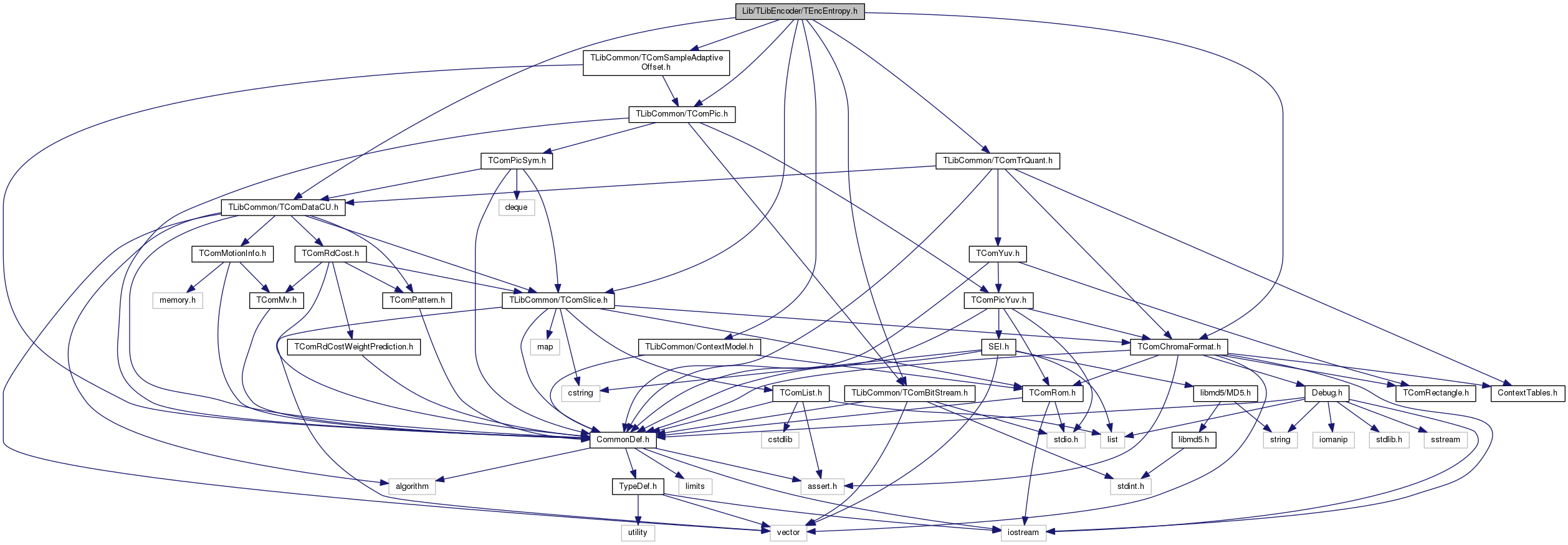 #include "TLibCommon/TComSlice.h"#include "TLibCommon/TComDataCU.h"#include "TLibCommon/TComBitStream.h"#include "TLibCommon/ContextModel.h"#include "TLibCommon/TComPic.h"#include "TLibCommon/TComTrQuant.h"#include "TLibCommon/TComSampleAdaptiveOffset.h"#include "TLibCommon/TComChromaFormat.h"
