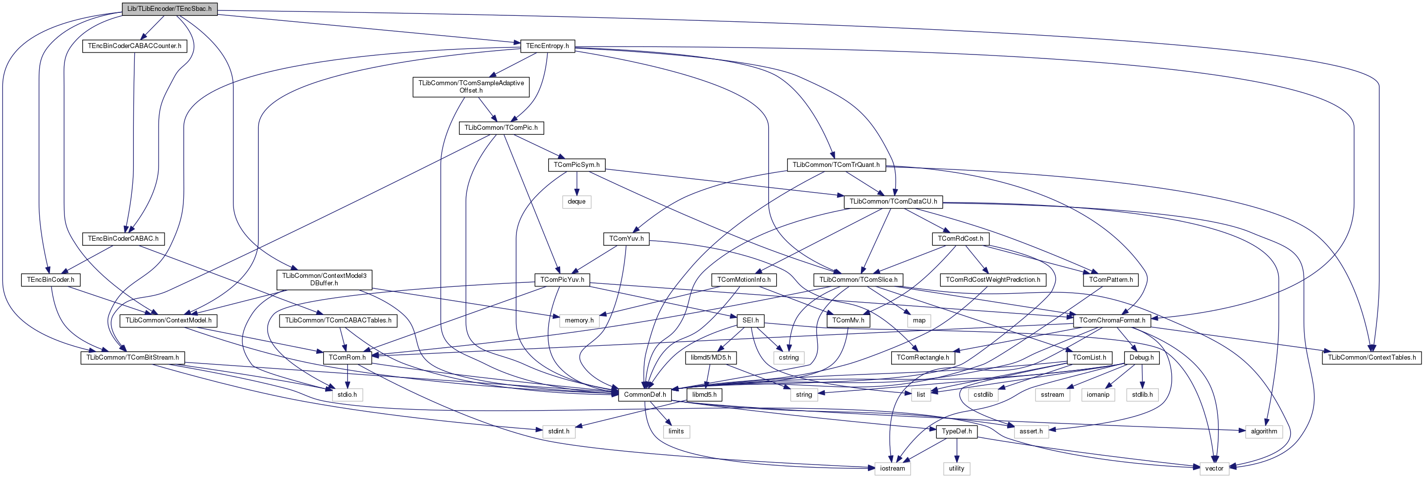 #include "TLibCommon/TComBitStream.h"#include "TLibCommon/ContextTables.h"#include "TLibCommon/ContextModel.h"#include "TLibCommon/ContextModel3DBuffer.h"#include "TEncEntropy.h"#include "TEncBinCoder.h"#include "TEncBinCoderCABAC.h"#include "TEncBinCoderCABACCounter.h"